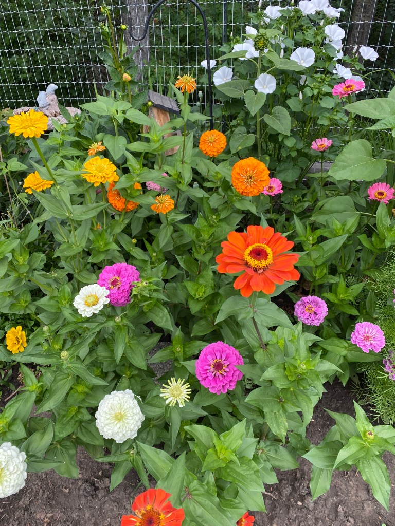 - 18 cells of State Fair Zinnias. Again the seeds are from 2023. I put about 4 or 5 seeds per cell so we wills see how many germinate. These should have 6 inch blooms in the colour range from lavender, orange, pink, purple, rose and scarlet. Last year the scarlet ones were striking!