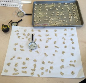 How are we going to count all those seeds? By ones, by twos, by fives, by tens? The serious counting begins.